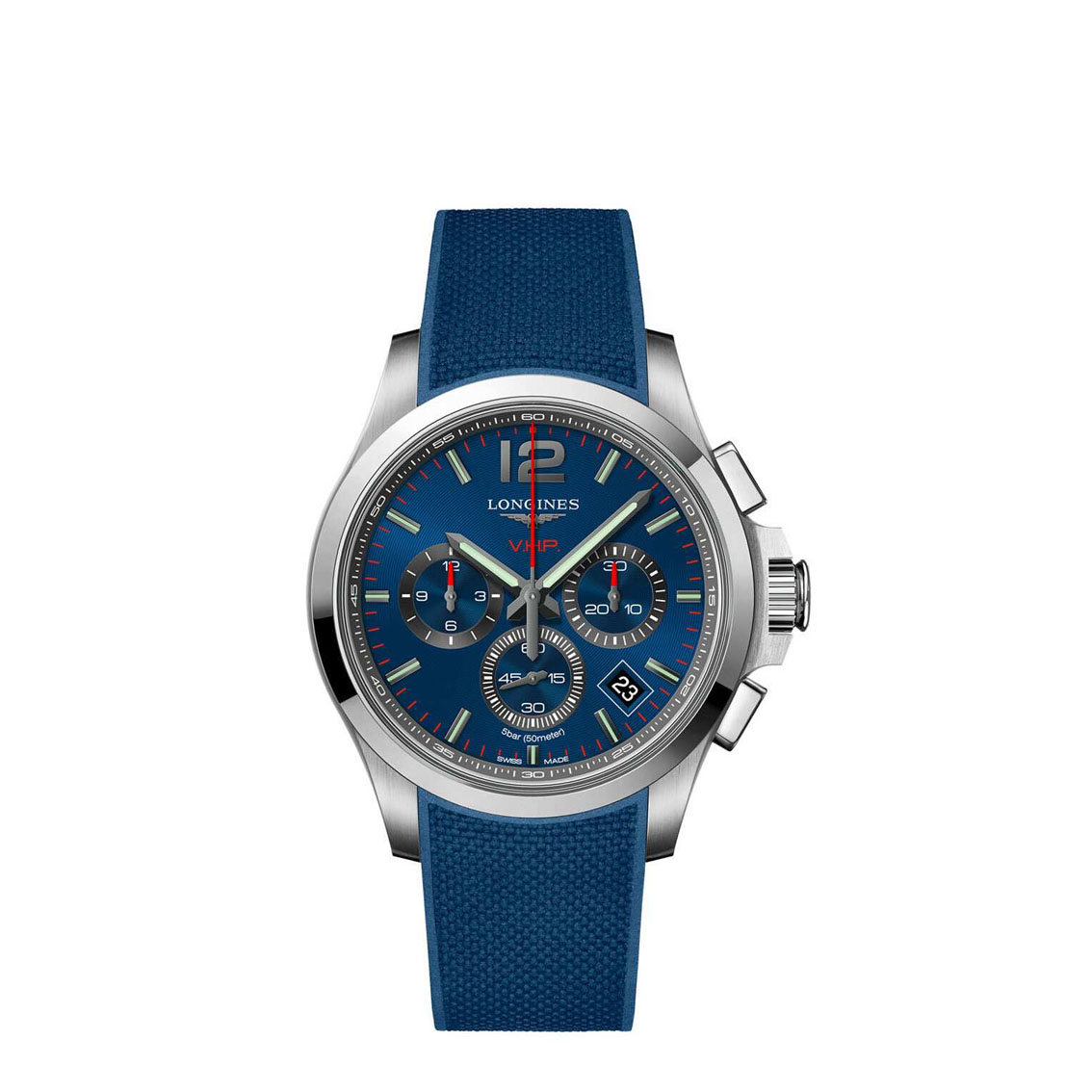 | Con el reloj Conquest V.H.P. (Precisión Muy Alta), Longines vuelve a la tecnología experta de la que fue pionera la marca: la relojería de cuarzo. La relojería de cuarzo se inventó en los años 1950, con relojes de pulsera de cuarzo disponibles desde 1969. La innovación continúa hoy en día: esta línea combina la alta precisión con un movimiento desarrollado exclusivamente para la marca, lo que proporciona al usuario una tecnología avanzada y un aspecto deportivo |