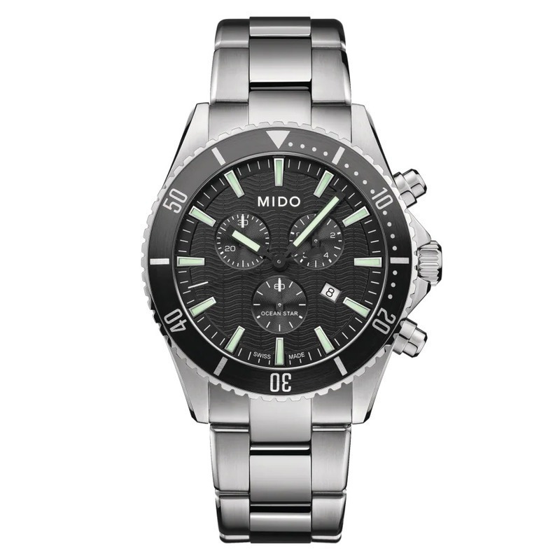 Con un aspecto deportivo y una presencia poderosa en muñecas atléticas, este reloj Ocean Star Swiss está equipado con un movimiento de cronógrafo de cuarzo, una característica única en esta colección de relojes de buceo dedicada al mundo marino.